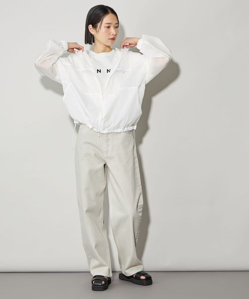 オーバーサイズでゆるっと羽織るデザインと、程良いシアー素材がポイント。