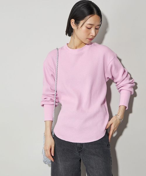 一枚でも、インナーでも着回ししやすいワッフル素材のロンT。
