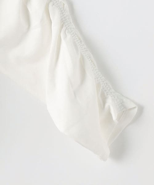 長めの袖丈が腕をすらっと長く見せ、ギャザーをよせたシャーリング袖がアクセントに◎。