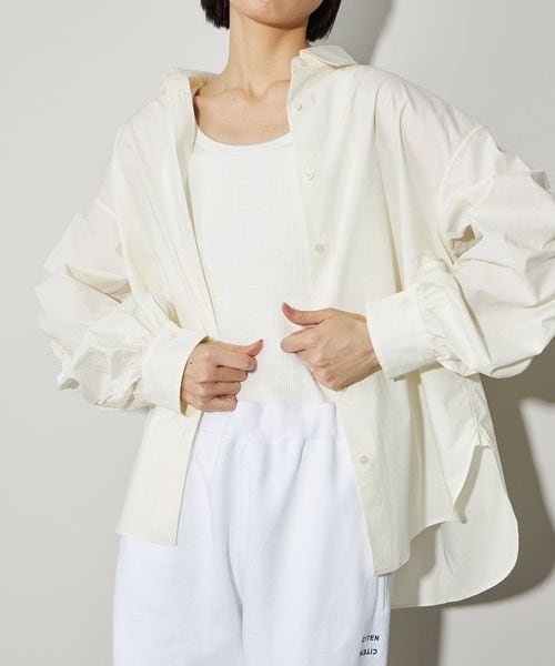 たっぷりとギャザーをよせた袖が大人可愛いシャツが登場