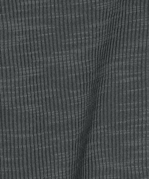 凹凸感のあるリブを使用しています。糸自体がボコボコしたスラブ素材なので一枚でも様になる素材感です。