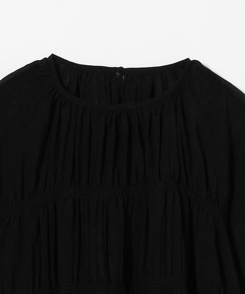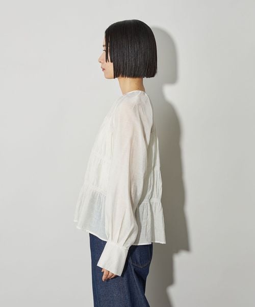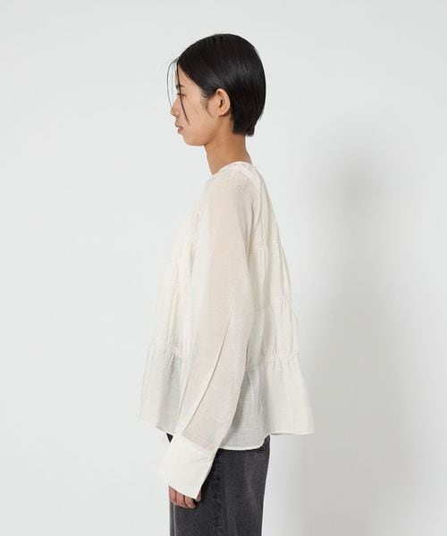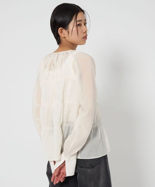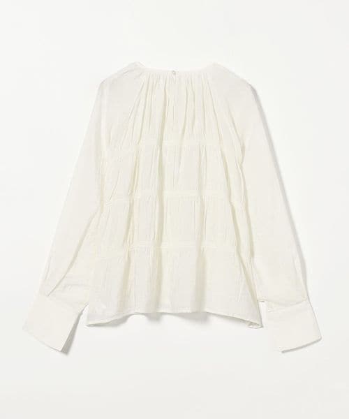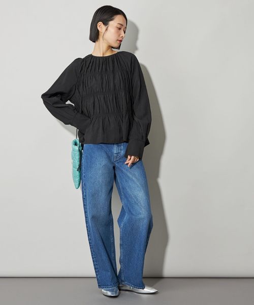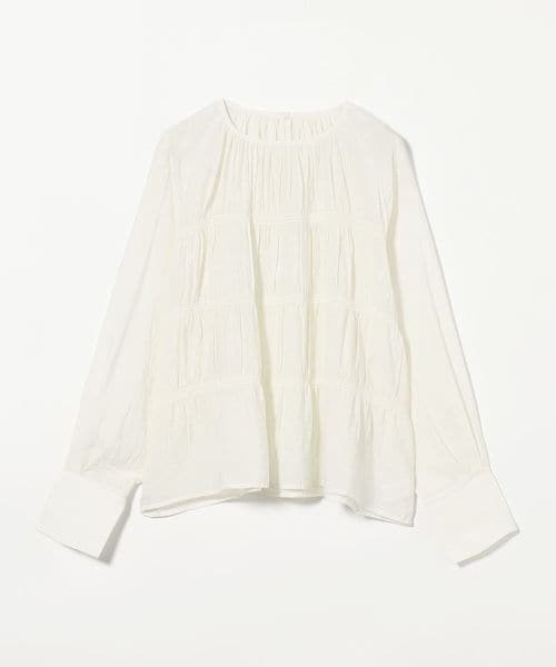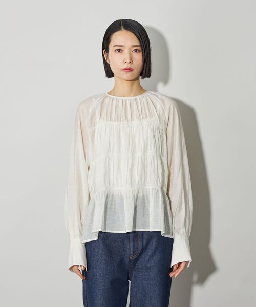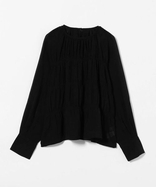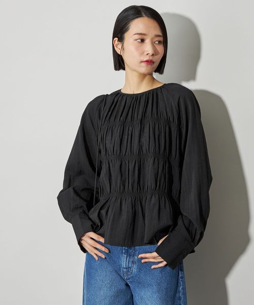 トレンドのシャーリングを取り入れたデザインのブラウス。