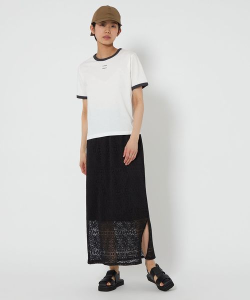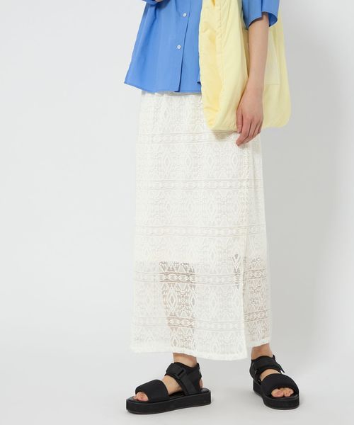 シンプルなナローシルエットのデザインに春らしいプリーツレースの素材感が春らしいアイテム。