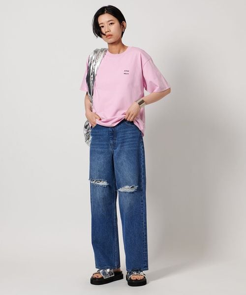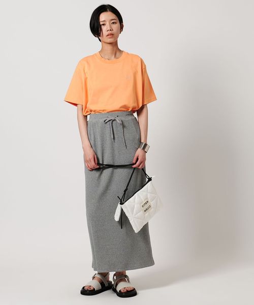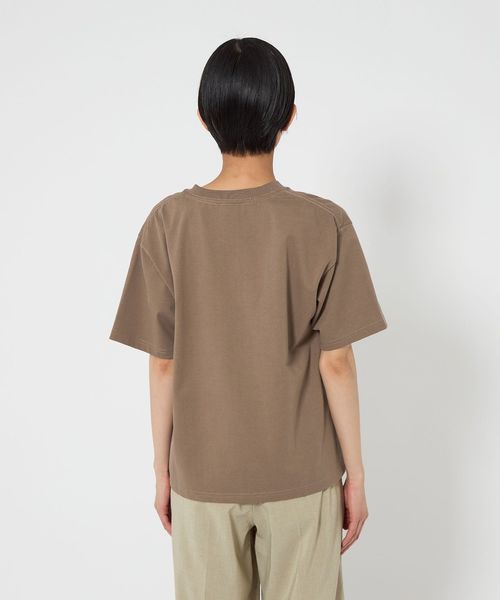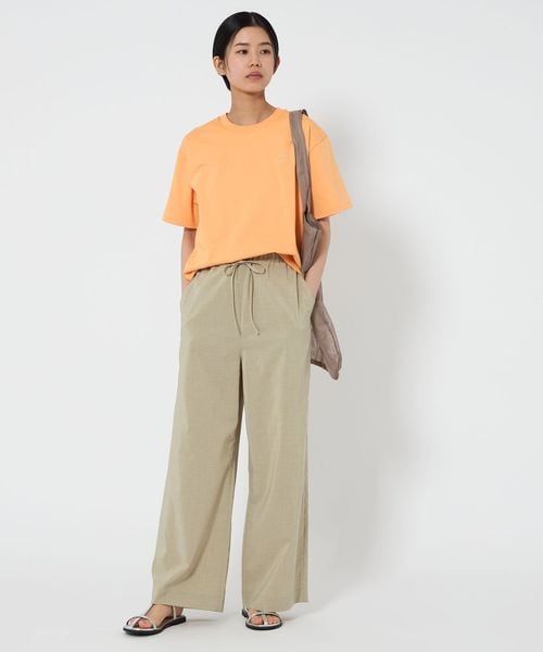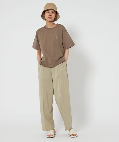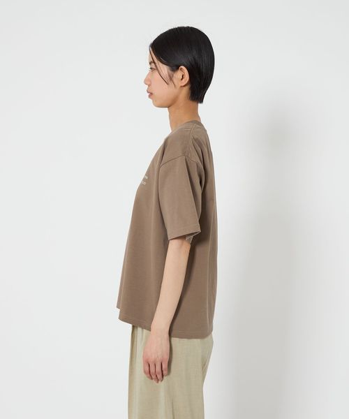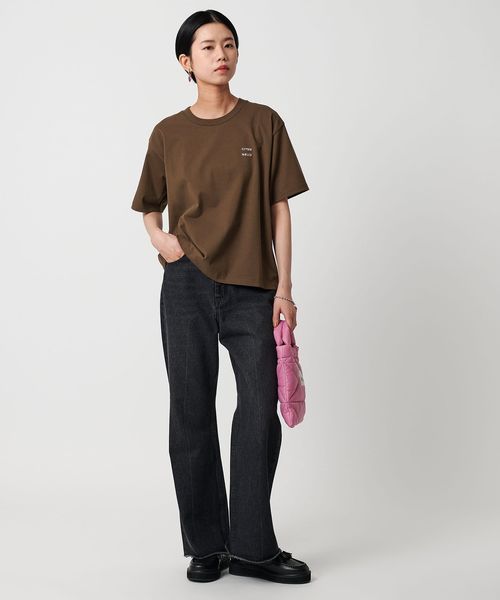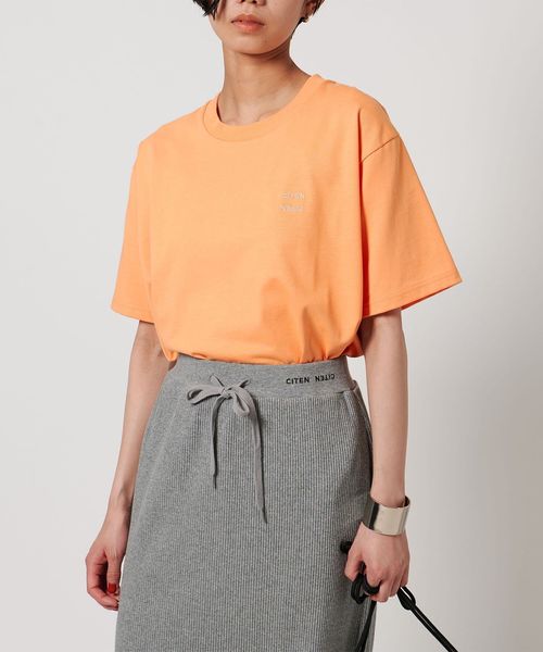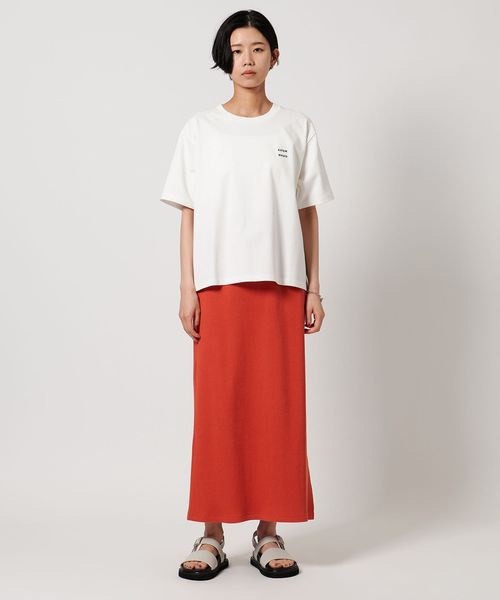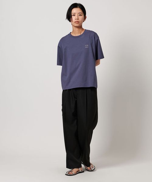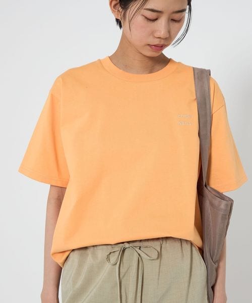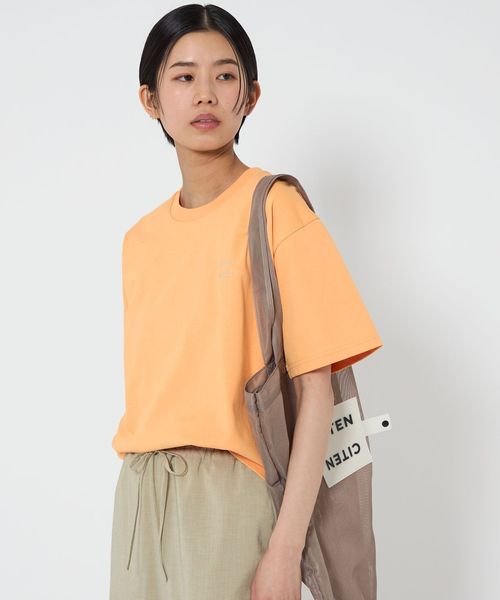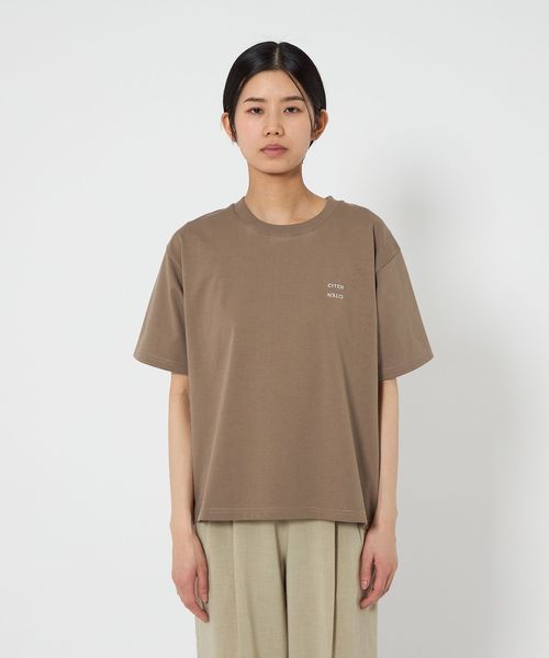 重ね着をしたくない暑い季節にもおすすめの、1枚で着映えするロゴTシャツです。