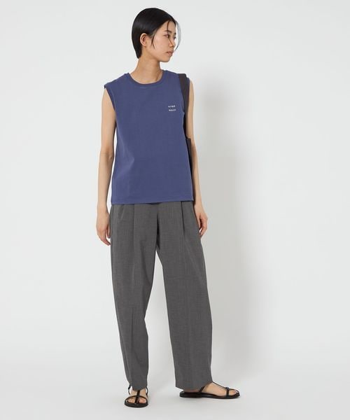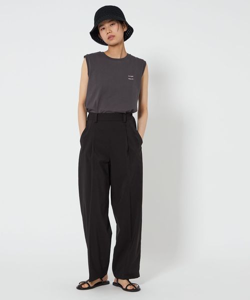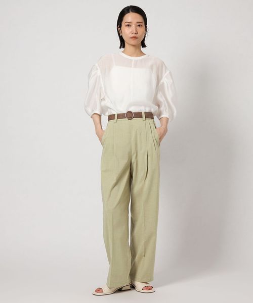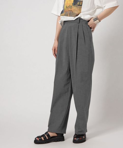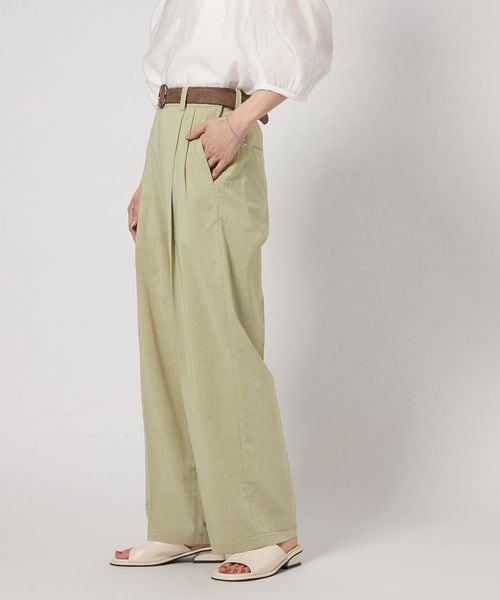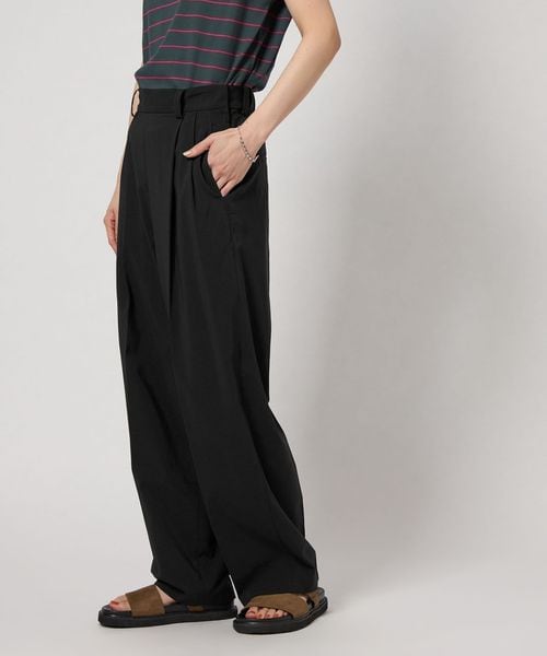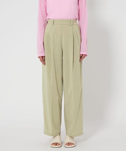 暑い季節に最適なさらさらした素材が魅力のタックパンツ。