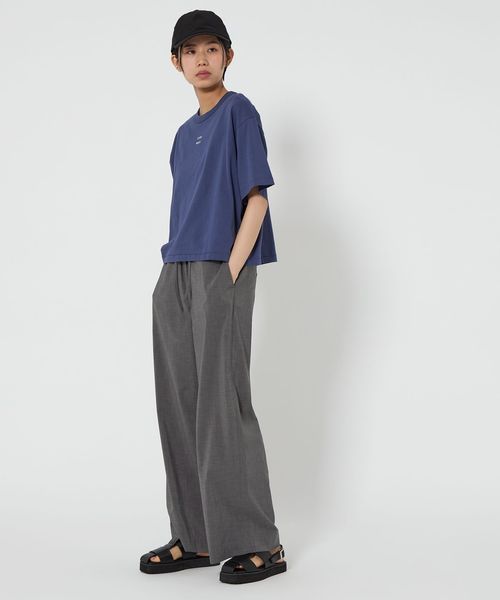 すとんと落ちるきれいなストレートワイドシルエットで足のラインを拾いすぎないバランスの良い着こなしに◎です。
