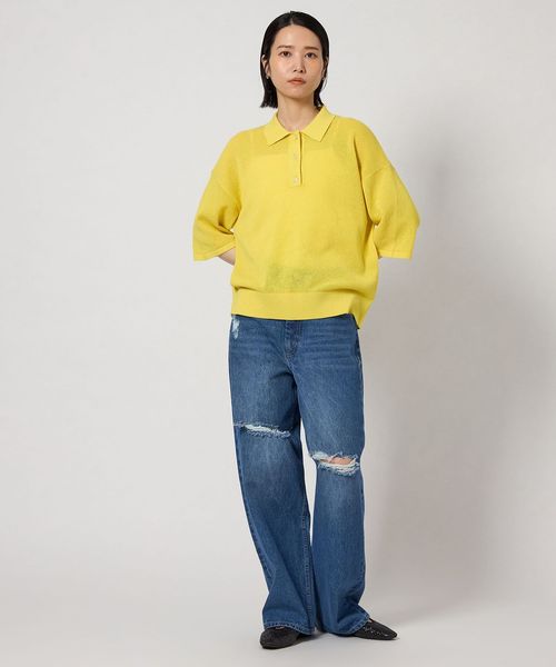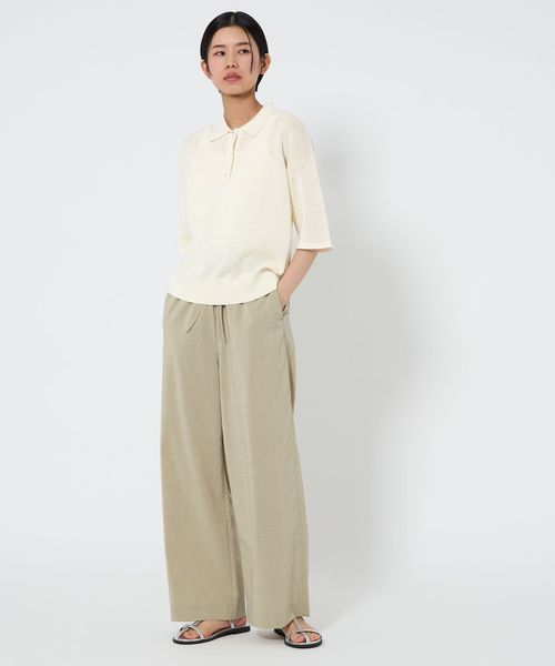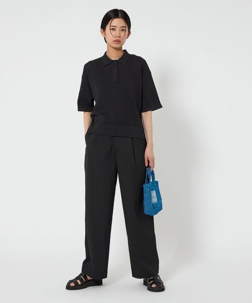 トレンドのポロ衿デザインのプルオーバーは編地がポイントのデザイン。