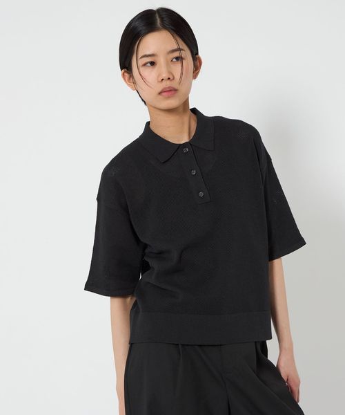 スポーティーなメッシュの編地が今年らしいニットポロ