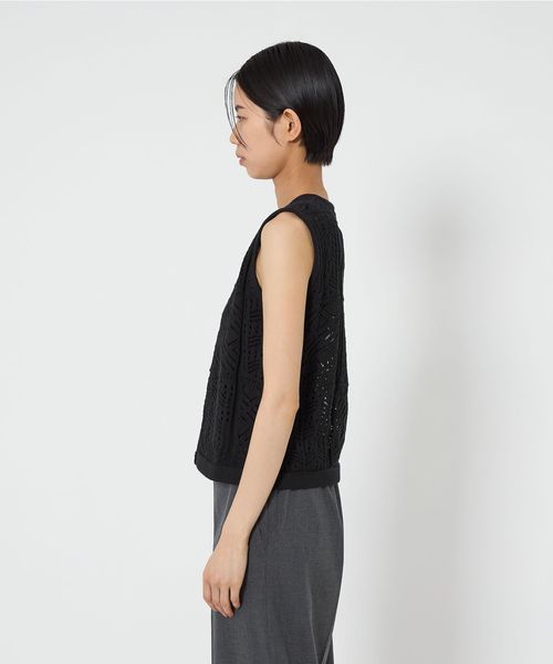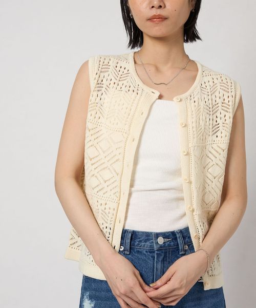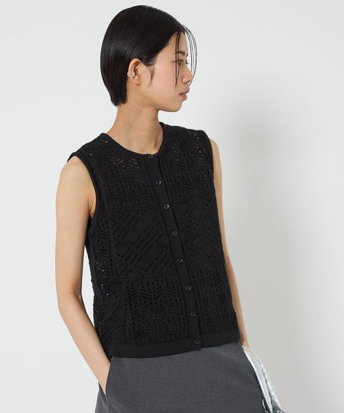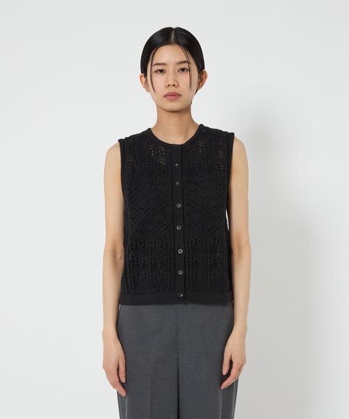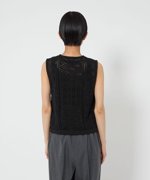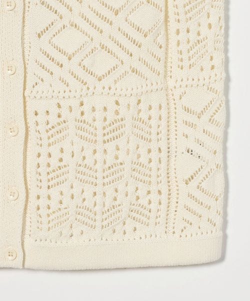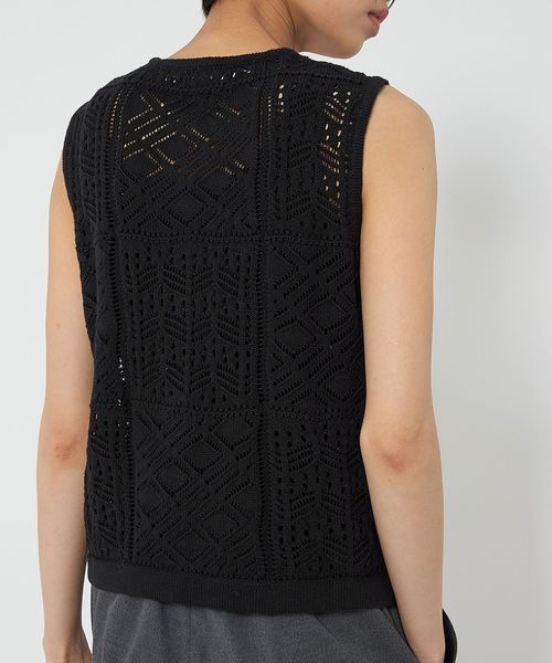 色々な柄を組み合わせたパターンメッシュ柄が目を惹くニットです。