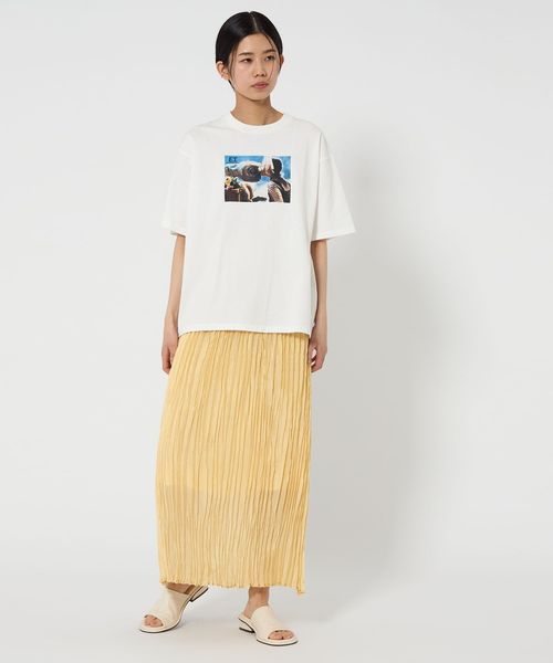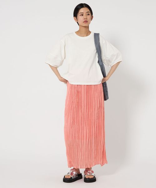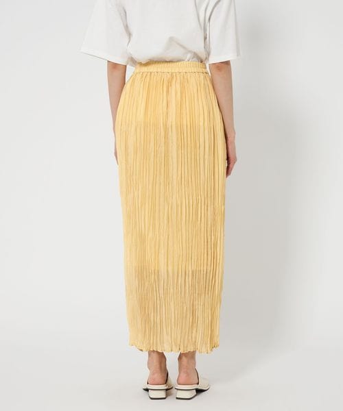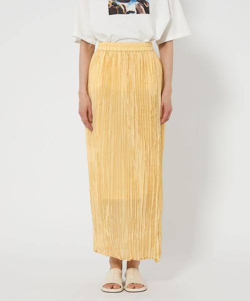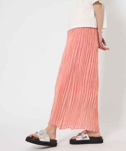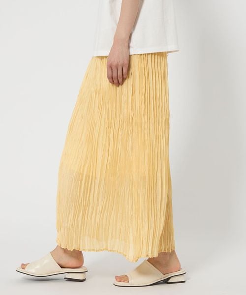 イージーな穿き心地ながらも、すっきりとしたナローシルエット&クリンクルで大人見えを叶えるスカートは、暑い夏にも最適なエアリーな素材で、着心地も◎です。