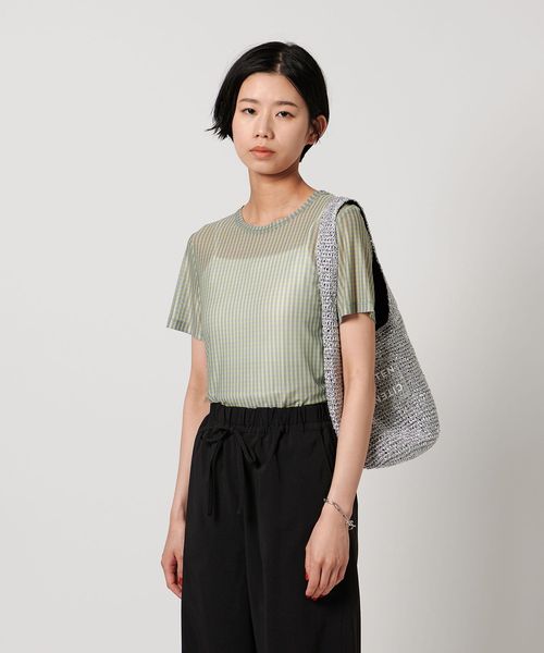 柔らかく、風通しの良いチュールのようなシアー素材にギンガムチェックのプリントを施した一枚です。