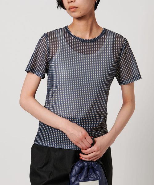 チュールのようなメッシュのジャージー素材に今年らしいカラーギンガムチェックのプリントを施しています。