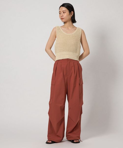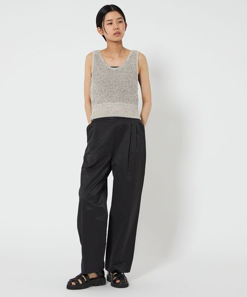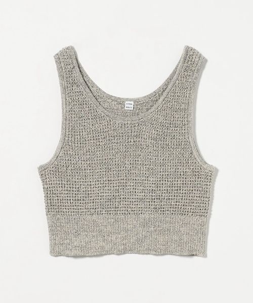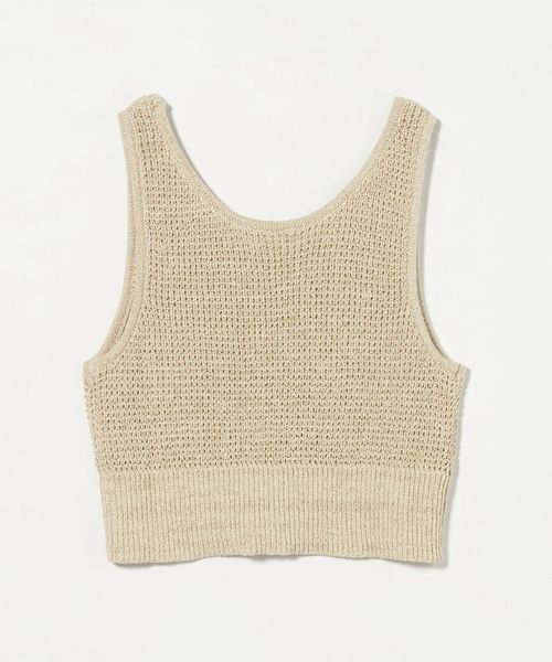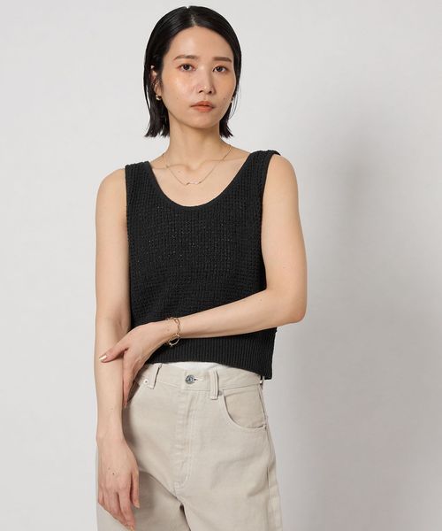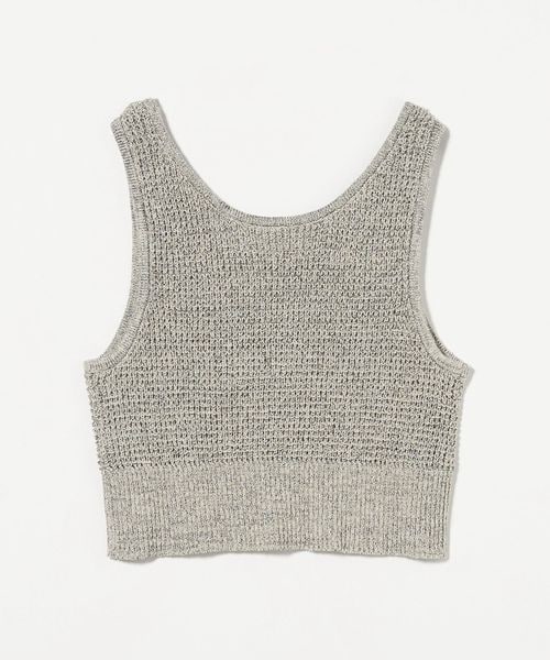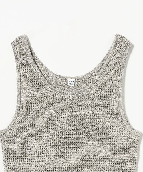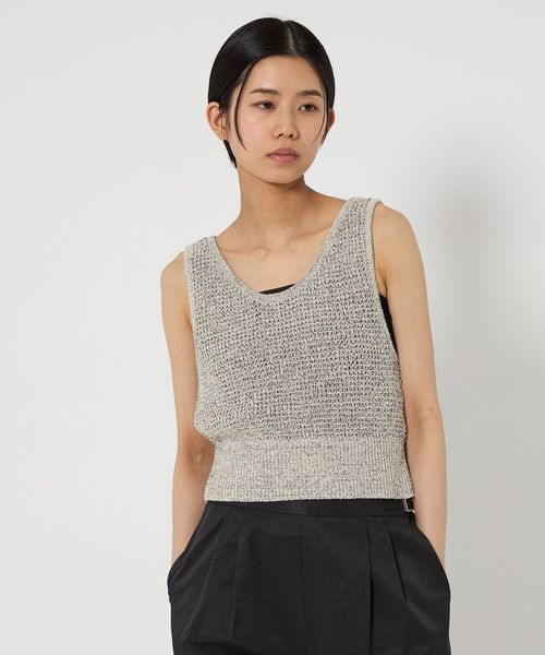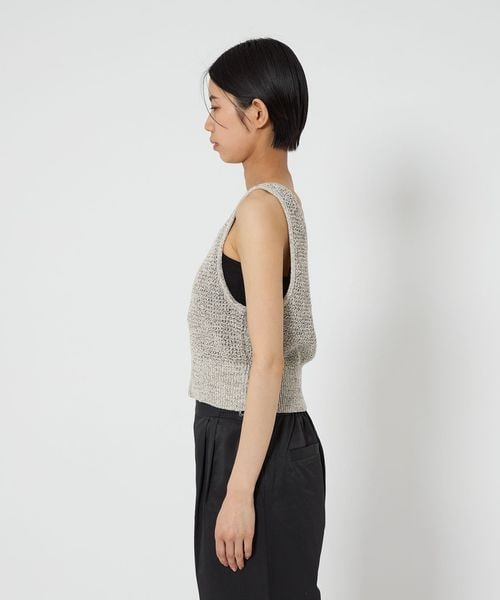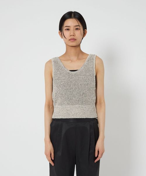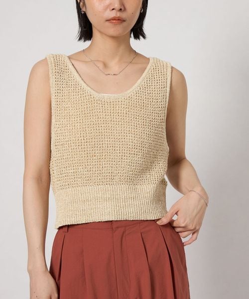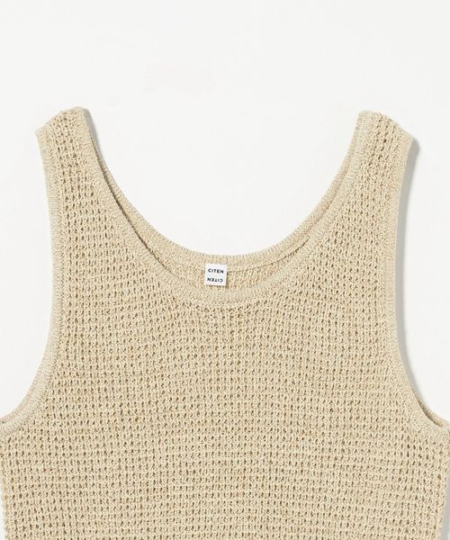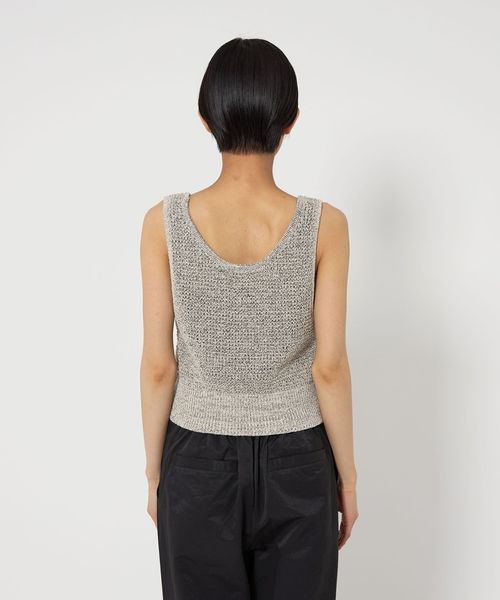 ドライタッチな糸を甘めに編むことによって、真夏でも着られる編地になっています。
