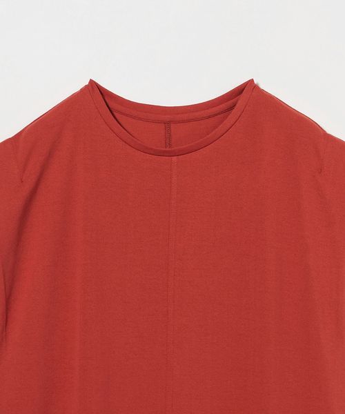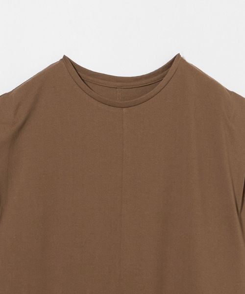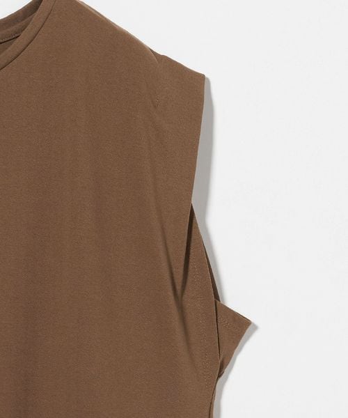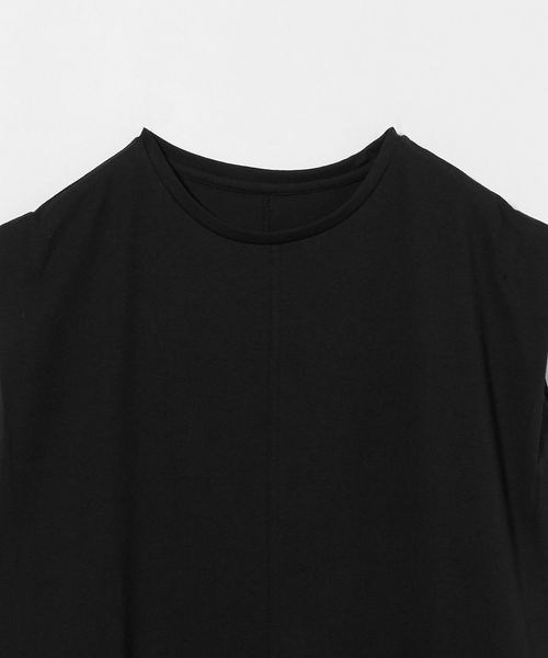 二の腕がすっきり見えるよう計算された肩周りや、タイト過ぎず優しくボディラインに沿うサイズ感もポイント。