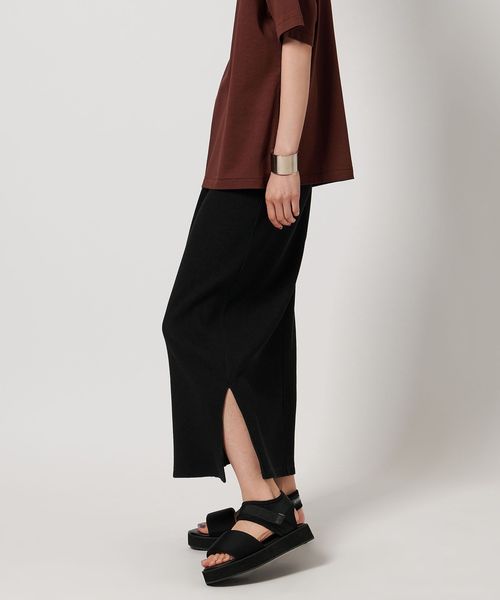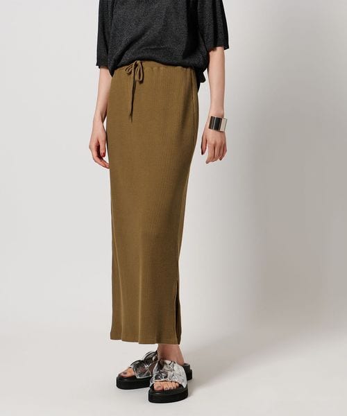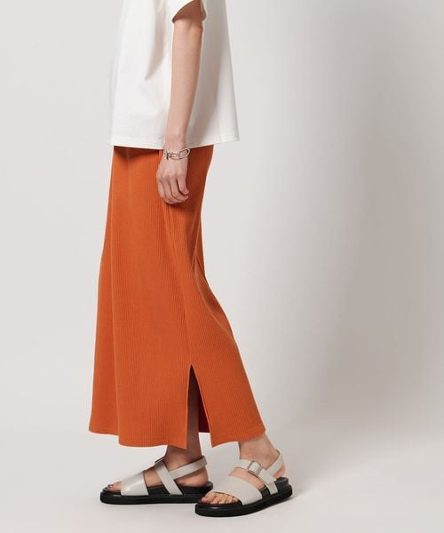 シンプルで着回し力が高く、ワードローブに1枚あると重宝するおすすめのリブスカート。