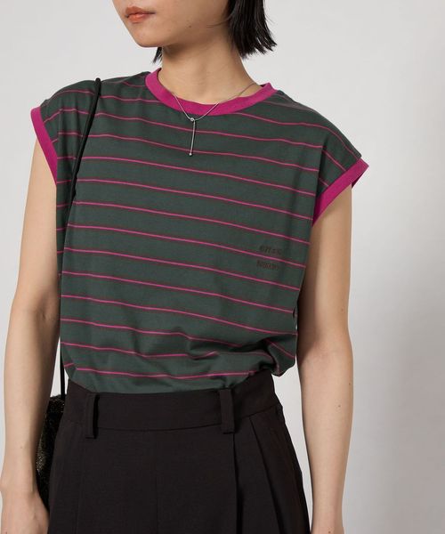 配色にこだわったボーダーピッチとロゴ刺繍がシンプルな中にさりげなく個性を加えます。