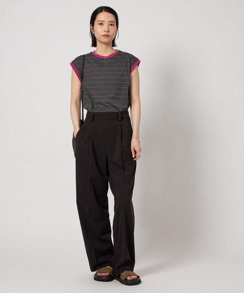 パンツスタイルもスカートを合わせても大人カジュアルに仕上がるフレンチスリーブトップ。