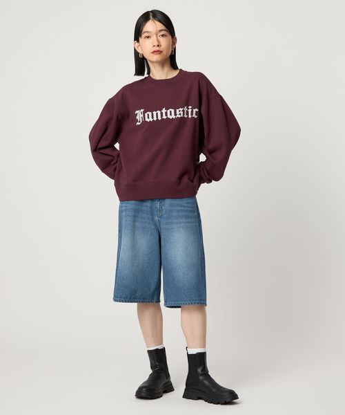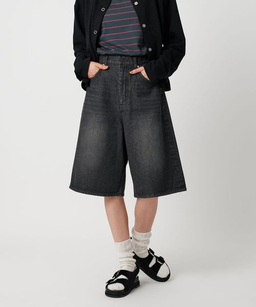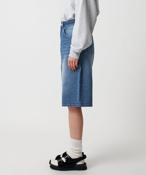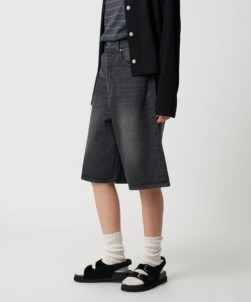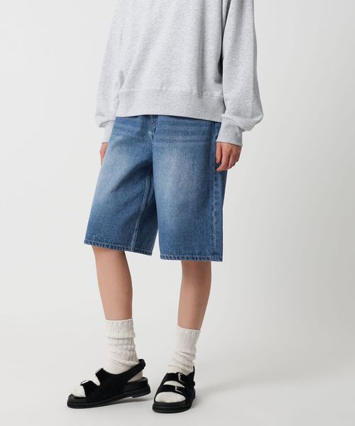 太めのシルエットが特徴のバギーデニムハーフパンツは、ラフに穿けてどこか都会的な雰囲気に。