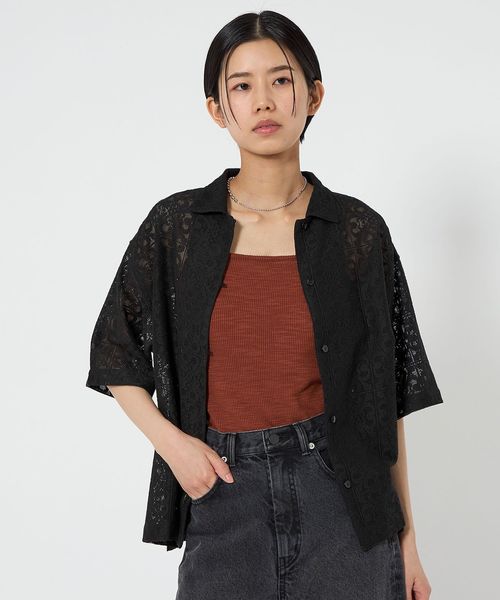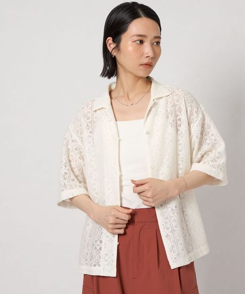 羽織りにも一枚着にも使えるレースショートシャツ