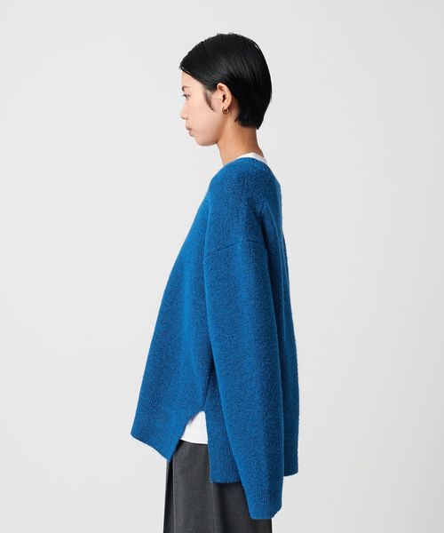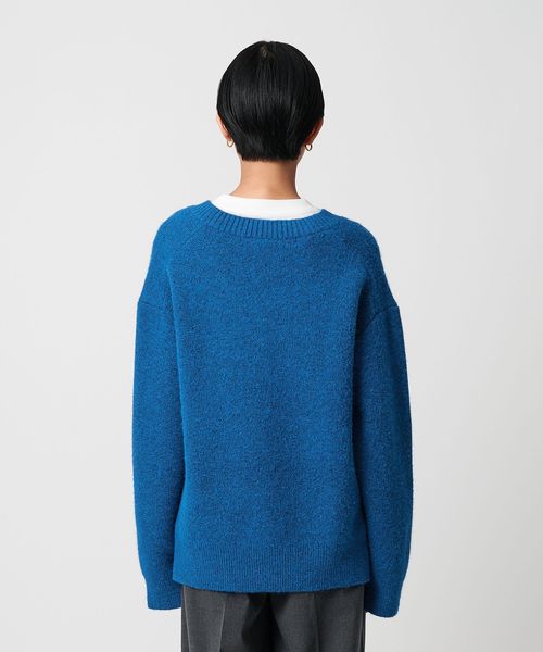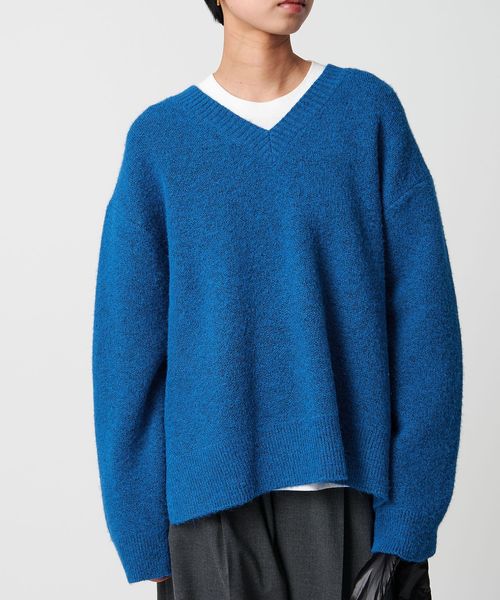 もちもちで暖かな質感が特徴のミドルゲージVネックニット。