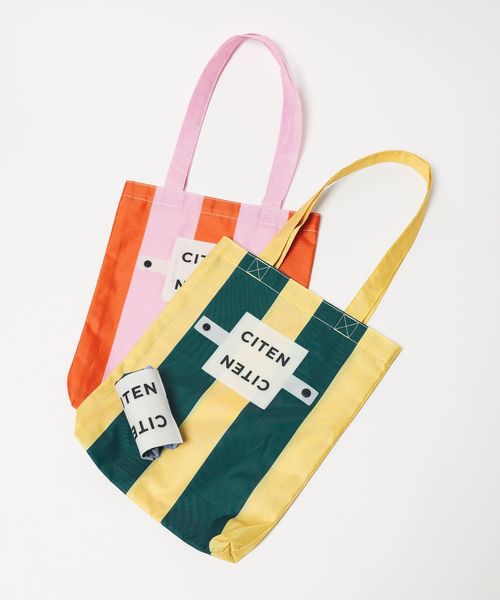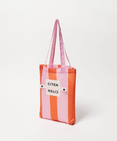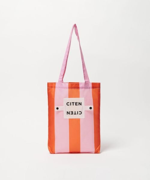 CITENらしいカラー配色のインパクトのある太めストライプのクルクルパッチントートバッグ。