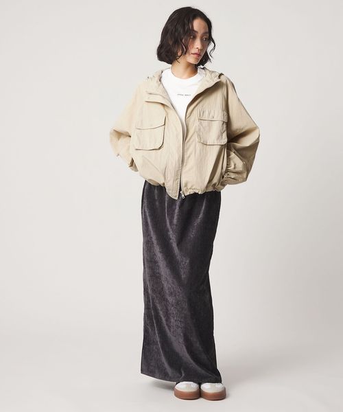 ラフに羽織れる軽さと、ワーク感のある大きめポケットが特徴のブルゾン。