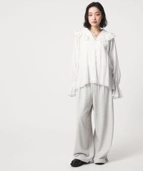 1枚で存在感のあるブラウスは、キャンディースリーブの袖やフリル衿を出してレイヤードでも楽しんでいただきたいアイテムです。