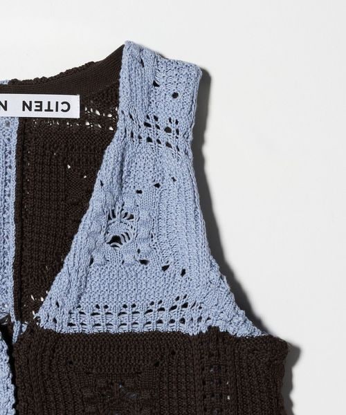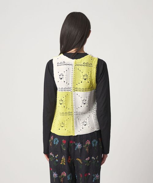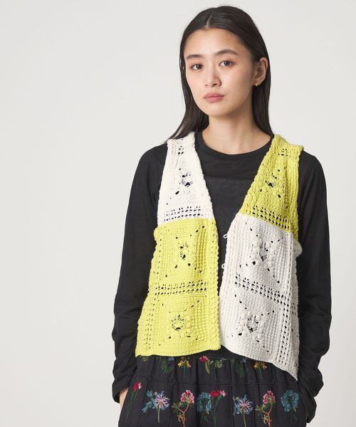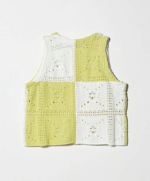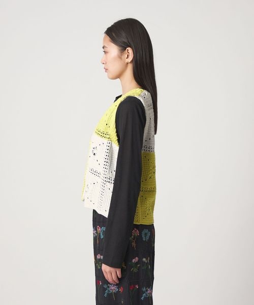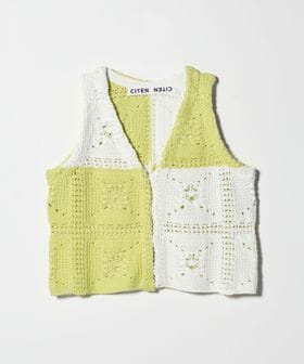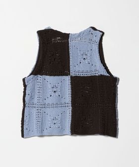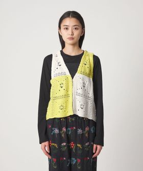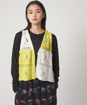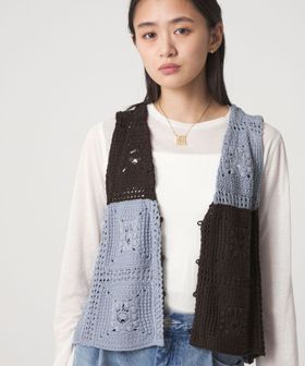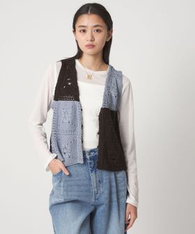 クラフト感が光る、抜け感のあるクロシェ風編みニットベスト。