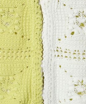 モチーフのクロシェ風編みは、手触りが良く柔らかい素材を使っています。