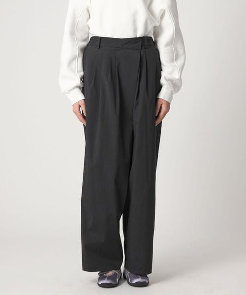 ラップデザインを取り入れた、ワイドシルエットのパンツ。