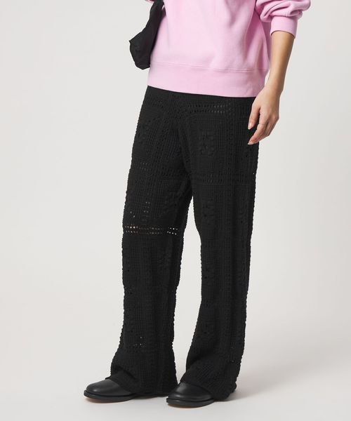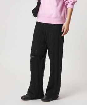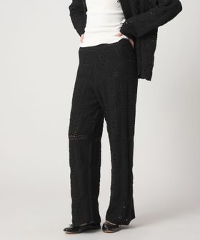クラフト感が光る、抜け感のあるクロシェ風編みニットパンツ。