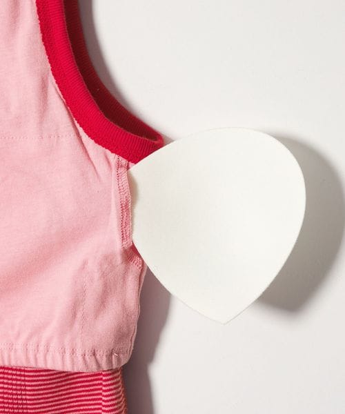 カップ付きなので夏は1枚でヘルシーな肌見せはもちろん、シアー素材のトップスのインナーとしても合わせていただきたいアイテムです。