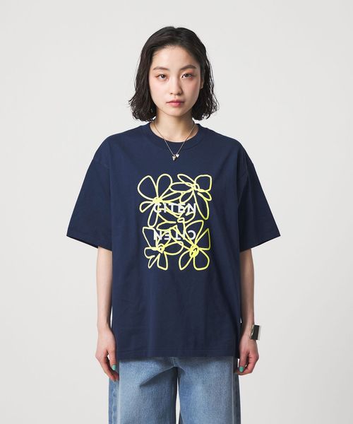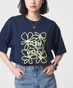 立体感のあるプリントが目を引くロゴフラワープリントT