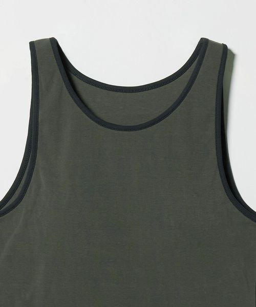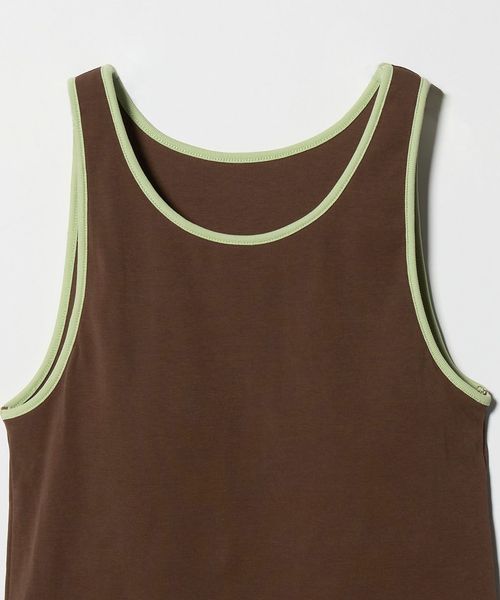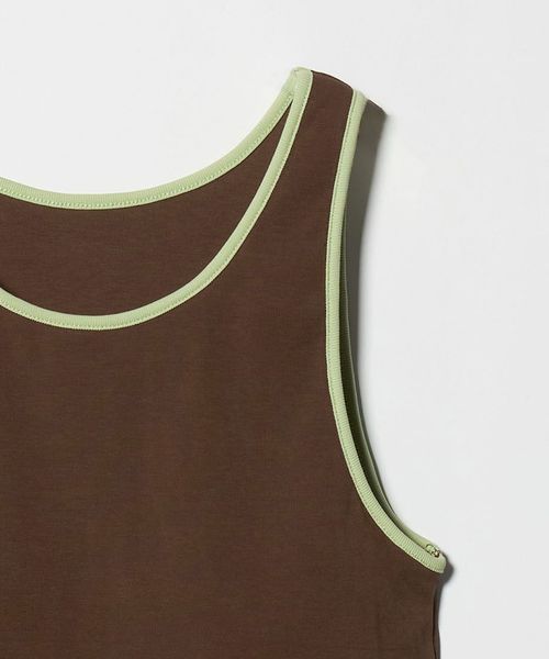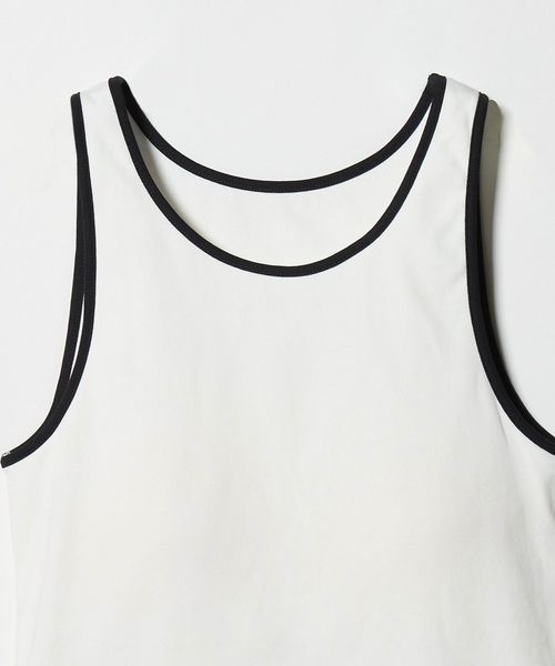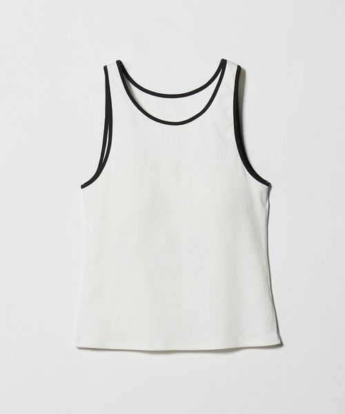 華奢なバイカラーパンピングとヘルシーなアームラインがデザインポイントのタンクトップ。