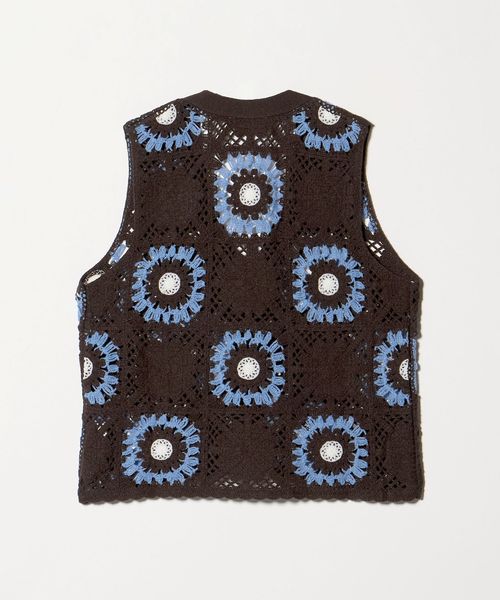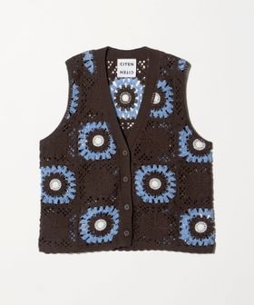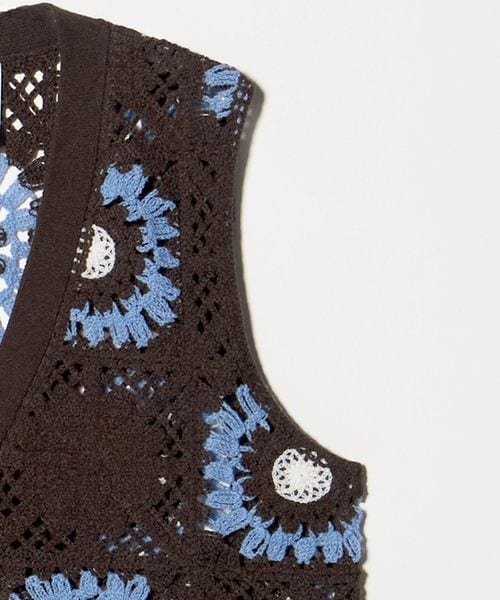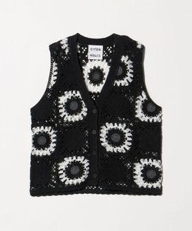 トレンド感あふれるレトロ可愛いクロシェ編み風デザインのベスト。