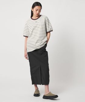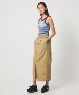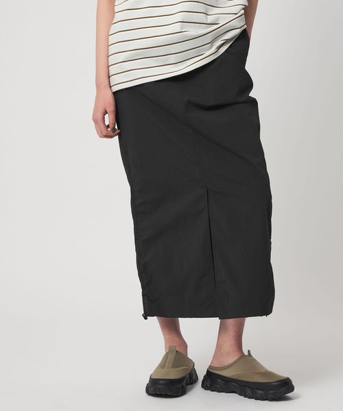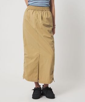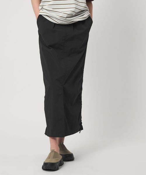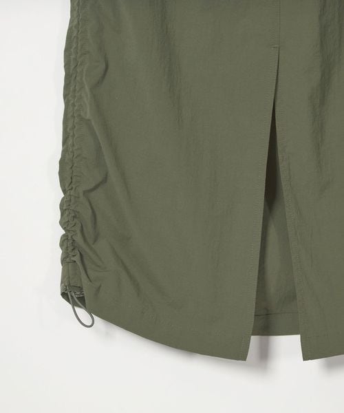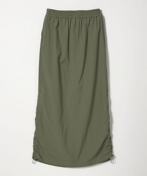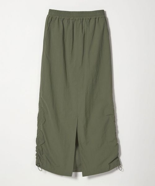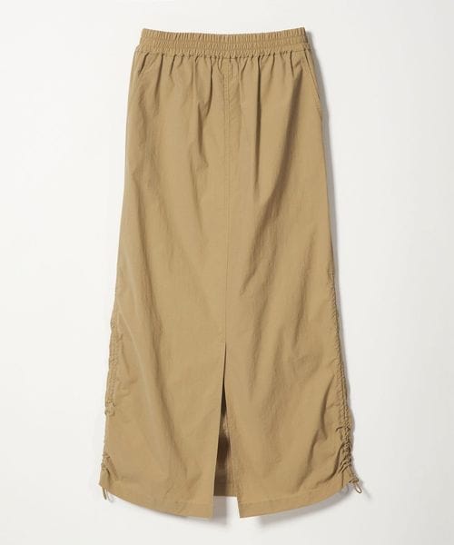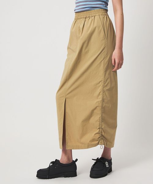 ギャザーを入れた立体的なディテールと、裾のスリットで動きやすさをプラスしたスカート。