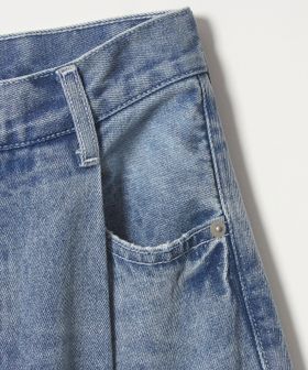 フロントに入れたタックで、ワイドシルエットに立体感と縦ラインをプラスしたCITENの新型デニム。