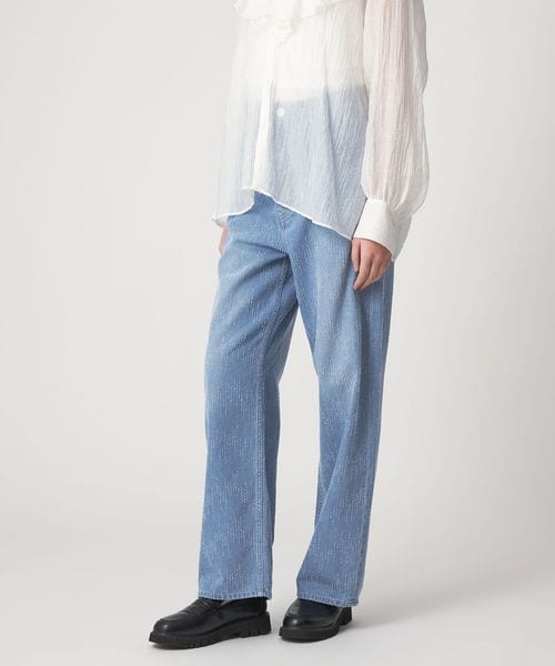 レーザー加工による模様がポイントのデニムパンツ