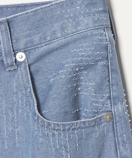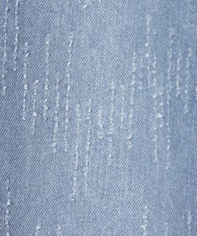 デニム素材にレーザー加工で模様を施し、従来のダメージ加工とは異なる表情を持たせています。
