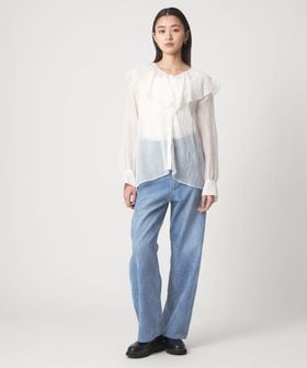 シルエットはベーシックにしつつ、レーザー加工で模様を表現した表情感のあるデニムパンツに仕上がりました。