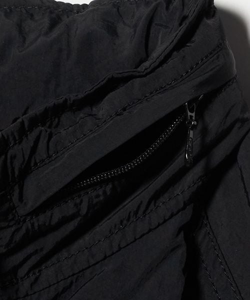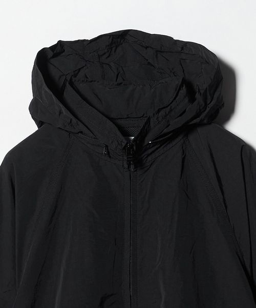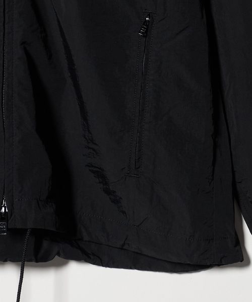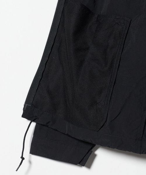 前後の内側にはメッシュのベンチレーションをお付けしていたり、スタンドネック部分にフードが収納したりと、実用的なデザインを取り入れています。