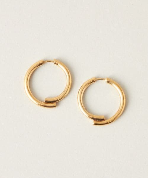 輪をずらしたような遊び心のあるデザインが特徴のフープピアス。