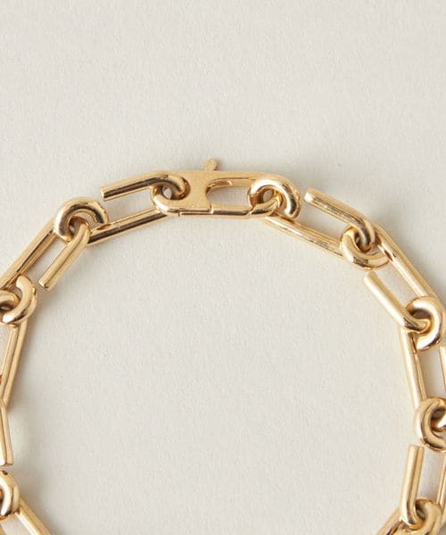 手元に華やかなアクセントを添えてくれるゴールドカラーのチェーンブレスレット。