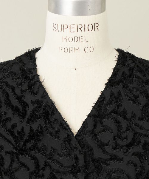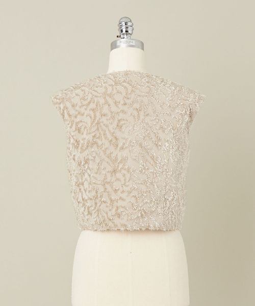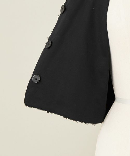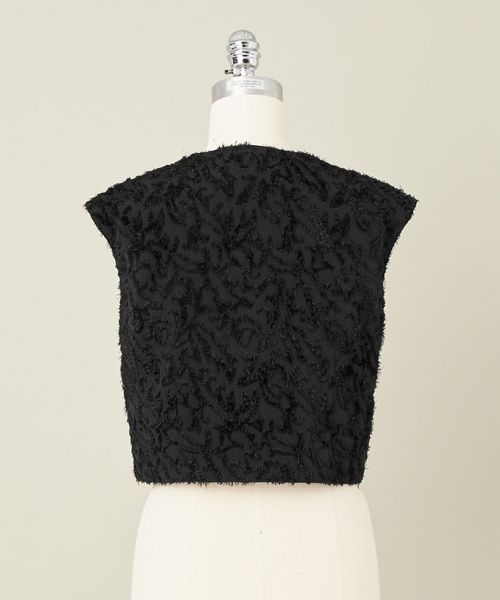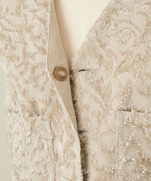 ジャカード織りの存在感があるボックスシルエットのパッチポケットベスト。