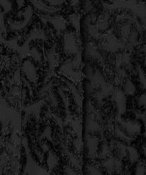縦糸とフリンジのポリエステルの光沢感と、横糸のコットンが織りあわさったマットでしっかりとしたジャカード織りの生地。