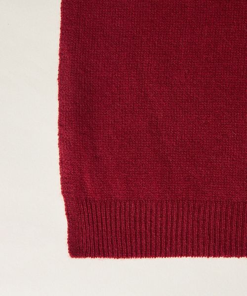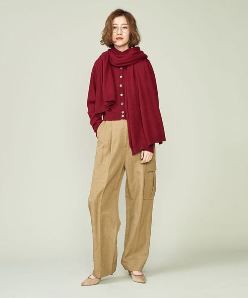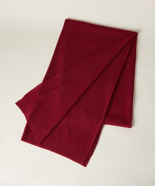 別注のワインカラーが着こなしに映えるニットストール。