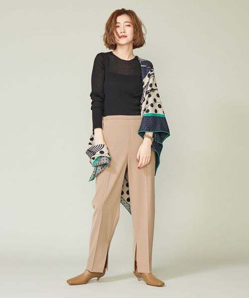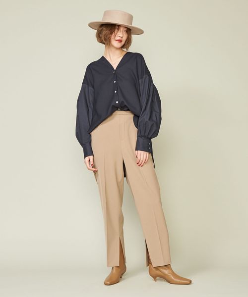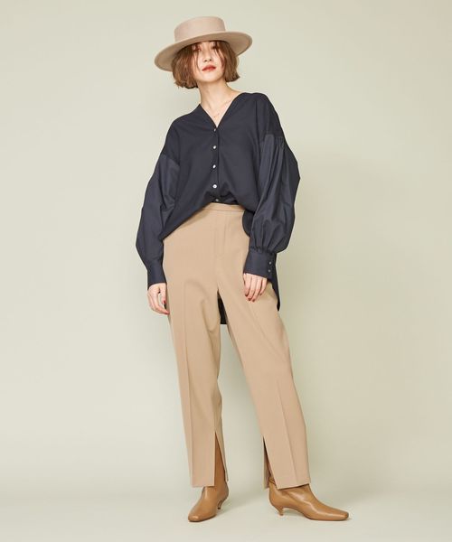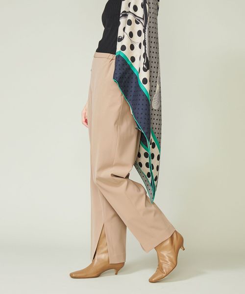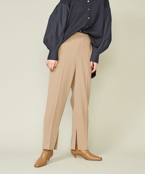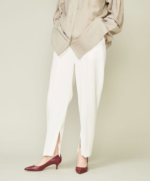 すっきりとしたシルエットで裾にスリットを入れたテーパードパンツ。
