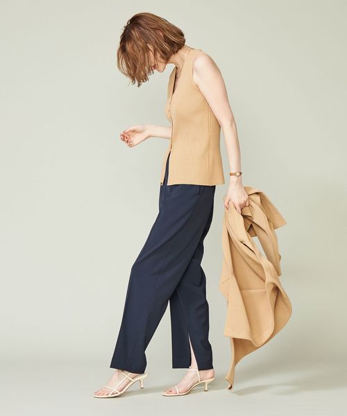 裾の内側にスリットが入ったきれいめなテーパードパンツ。