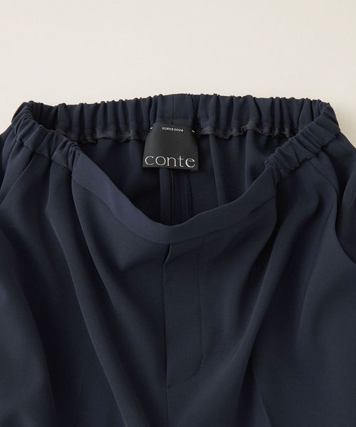 ウエストゴムのイージーパンツですがセンタープレスを施して上品な仕上がりの一枚です。