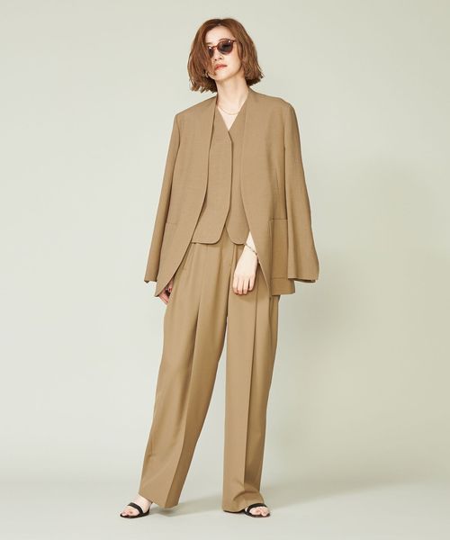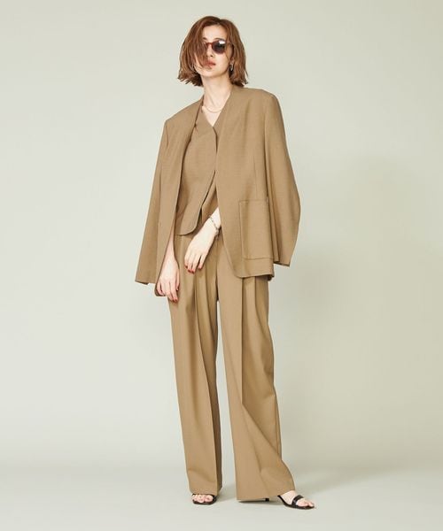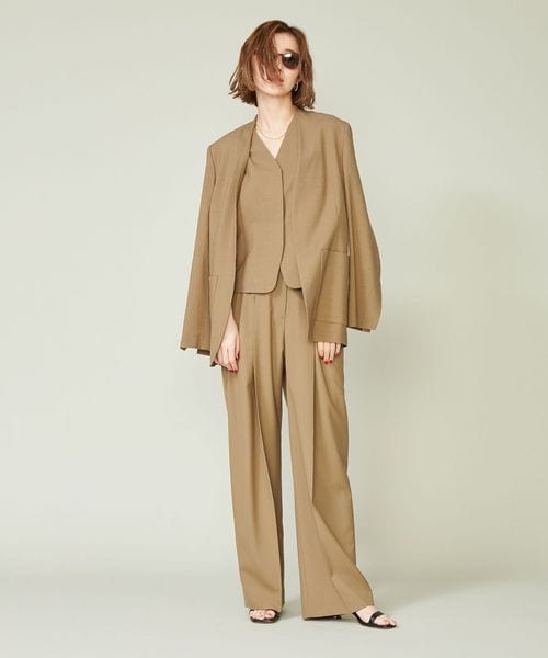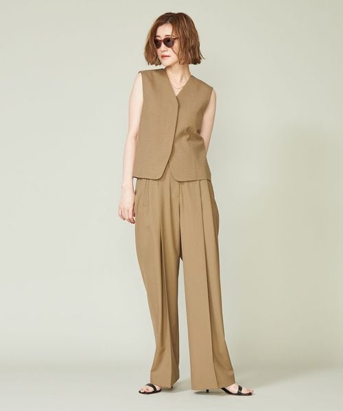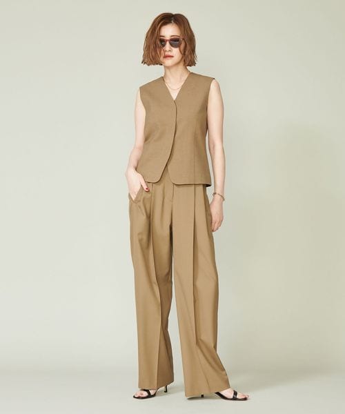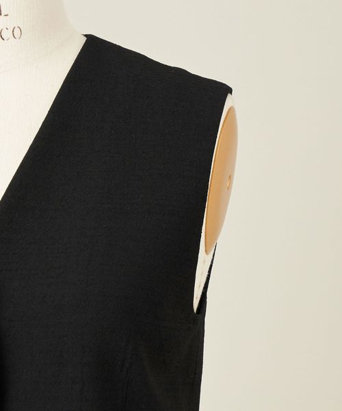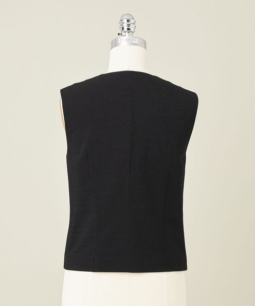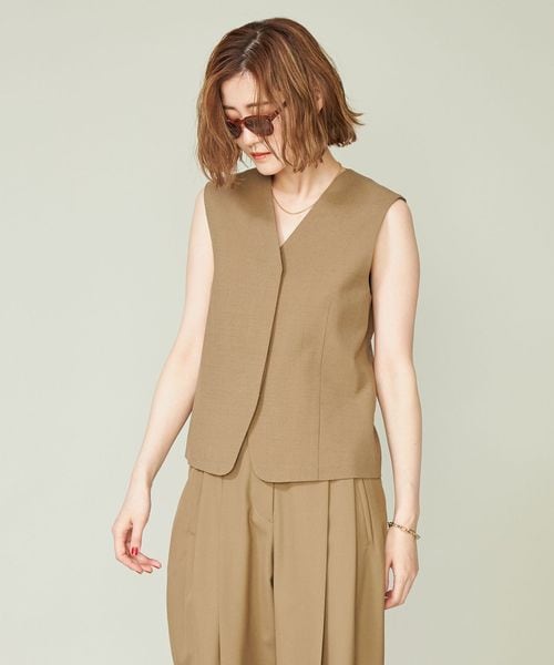 ジャケットとのあわせも考えたミニマルなデザインのジレ。